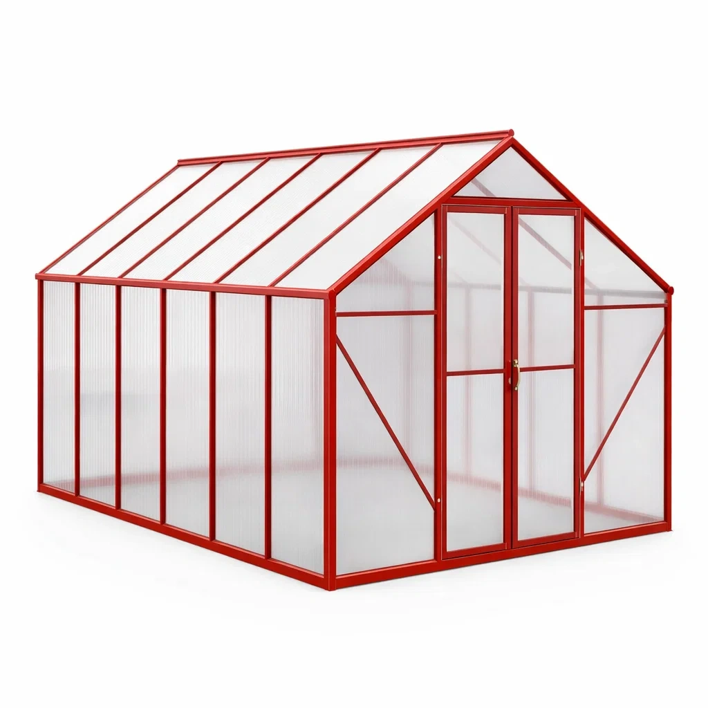 Serre en aluminium Rouge et polycarbonate