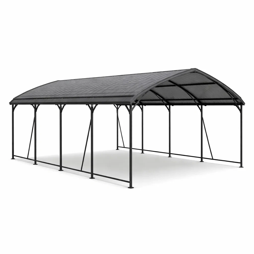 Abri voiture en acier Noir avec toit en polycarbonate