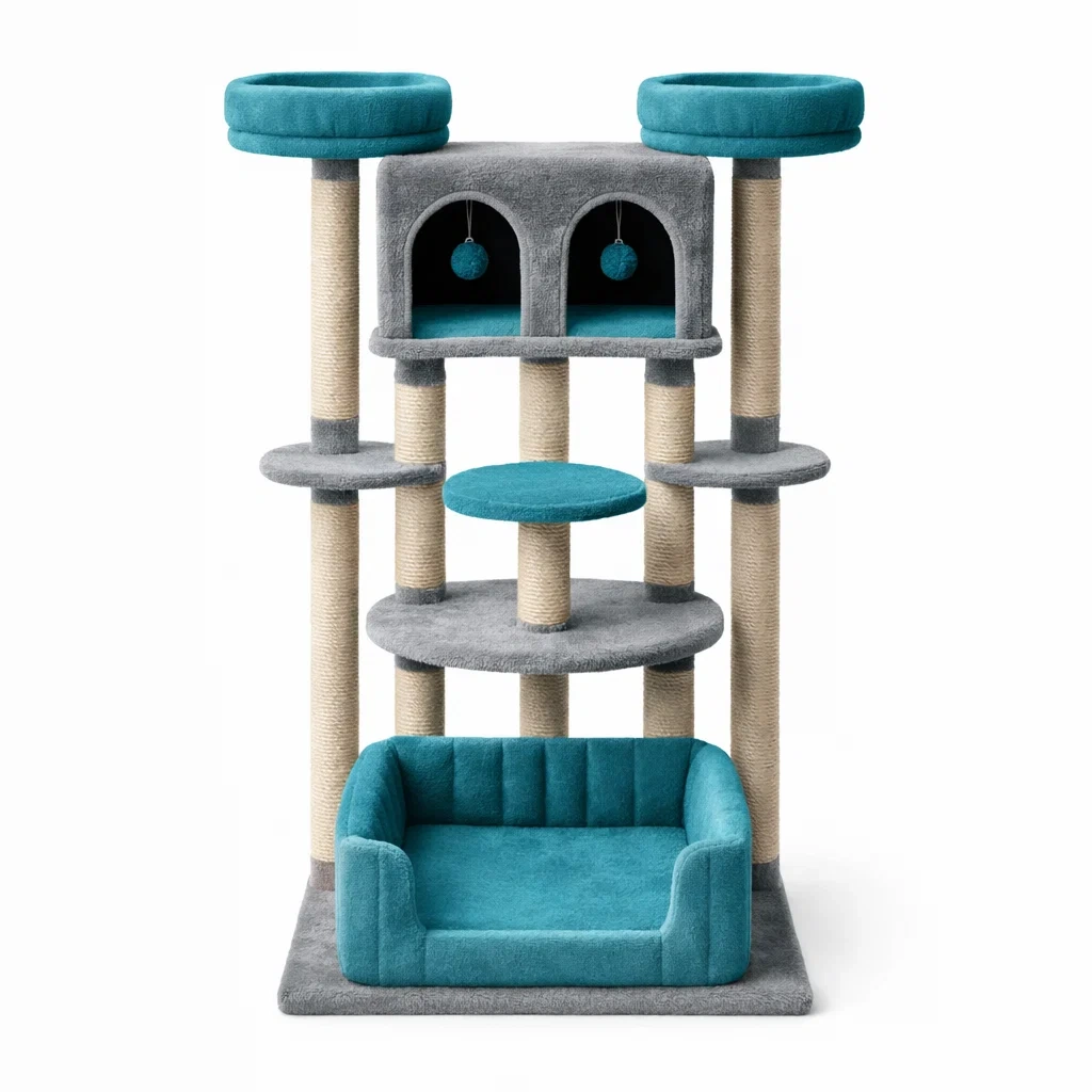 Composants : Comprend 2 niches, 1 canapé, 4 colonnes à griffer, 2 plateformes, 2 jouets suspendus.