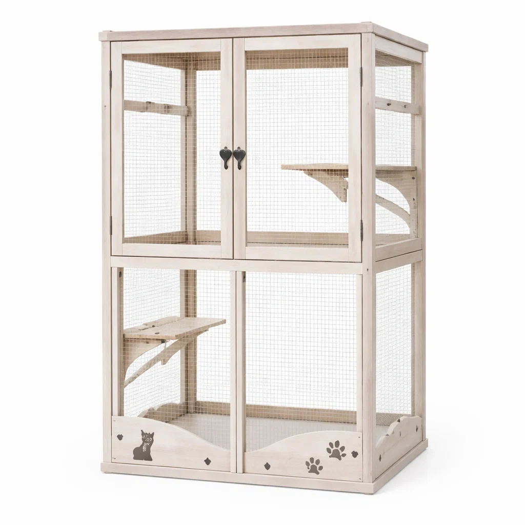 Enclos pour chat en bois de pin et acier galvanisé Beige