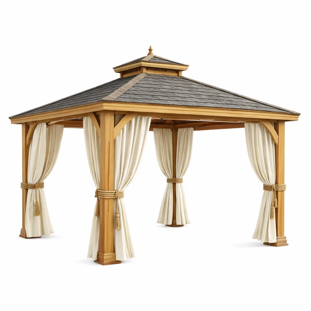 Le pavillon comprend également des rideaux en polyester et des aérations sur le toit pour une circulation d'air optimale.