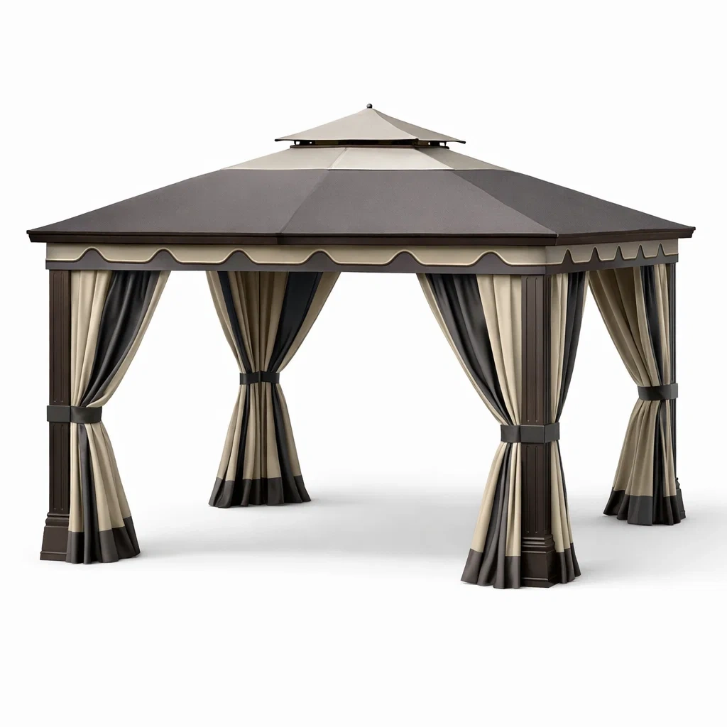Matériau: Structure en aluminium, toit en tissu polyester imperméable, rideaux en polyester